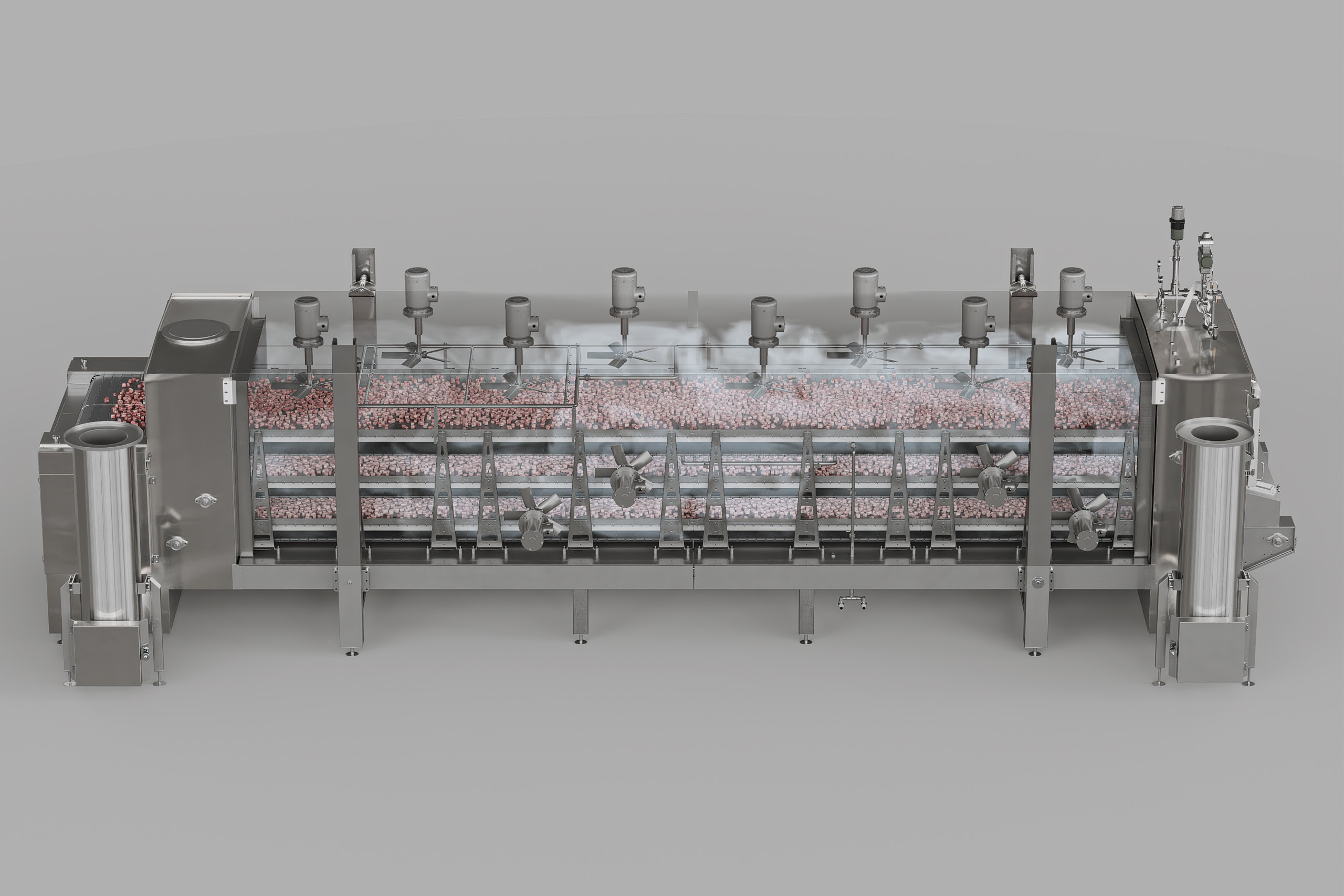 Our tunnel freezers are ideal for cooling, chilling, and freezing a wide variety of food. With our tunnel freezer variants, you can process everything from small items such as burger patties and diced meats, berries, or vegetables that tend to freeze together to high-volume products and foods with prolonged cycles such as meats, seafood, and baked goods.